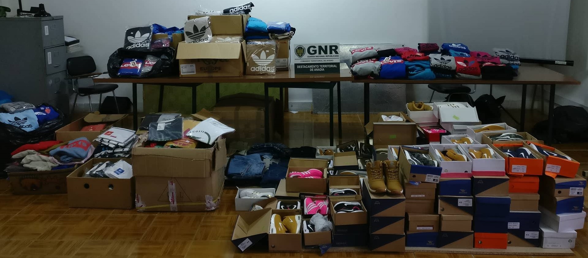 Os militares desenvolveram uma operação de fiscalização ao mercado semanal de Vilarinho do Bairro, visando a detenção de artigos contrafeitos, que culminou com a apreensão de: