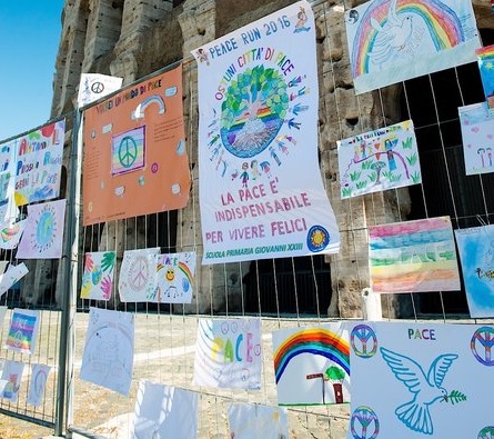 Para a comemoração do Dia Internacional da Paz das Nações Unidas, no 21 de setembro, mais de cinco mil desenhos sobre a paz, efetuados por crianças e jovens de trinta e três países, serão exibidos no Coliseu de Roma – Itália. Destes cinco mil desenhos, aproximadamente mil, foram enviados por Escolas Portuguesas de Norte a Sul do país. São “obras de arte” que ficarão expostas durante nove dias e foram obtidas em escolas visitadas pelos corredores da Sri Chinmoy Oneness-Home Peace Run, que poderão ser vistas por cerca de cento e oitenta mil pessoas.