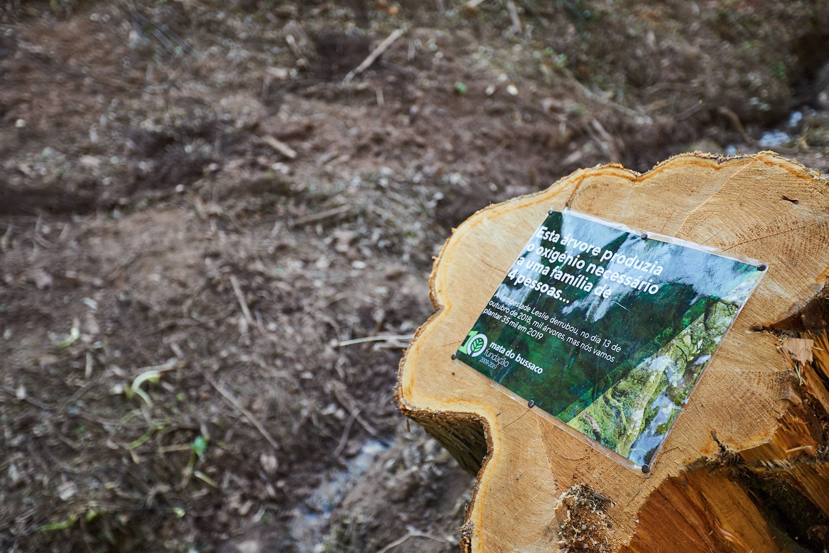“Esta árvore produzia o oxigénio necessário a uma família de quatro pessoas… A tempestade Leslie derrubou no dia 13 de outubro de 2018, mil árvores, mas nós vamos plantar 35 mil em 2019”.