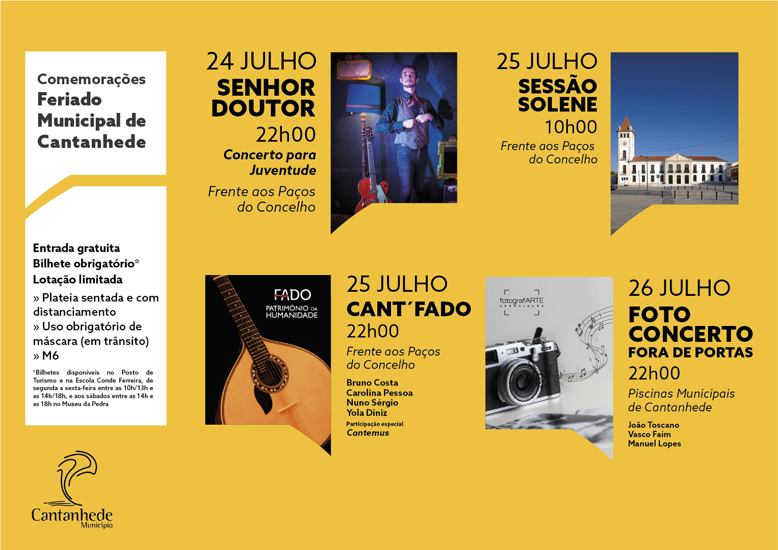 Espetáculo dedicado ao consagrado Património Cultural Imaterial da Humanidade como é o Fado, com a participação de Yola Dinis, Carolina Pessoa, Nuno Sérgio, Bruno Costa (artistas com trabalhos editados) e com a participação especial do Cantemus – Coro Infantojuvenil do Município de Cantanhede, acompanhados por exímios músicos que proporcionarão uma extraordinária Gala de Fado na cidade, com gente de Cantanhede.