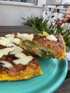 Piquem cebola e coloquem a refogar com um pouco de azeite numa frigideira anti-aderente. Enquanto a cebola cozinha, ralem batata crua e mexam (ou juntem batata cozida cortada aos pedaços, caso tenham de sobras). Batam ovos suficientes para cobrir os ingredientes e temperem a gosto (usei alho em pó, paprika, pimenta e sal).