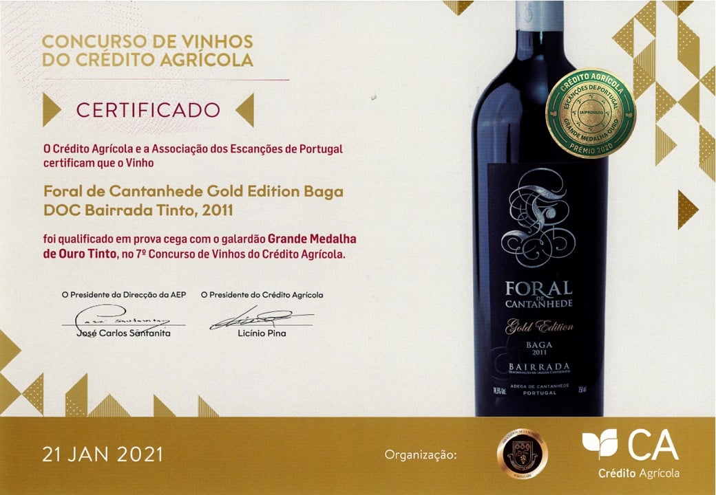 O Crédito Agrícola, em parceria com a Associação dos Escanções de Portugal, distinguiu dois vinhos da Bairrada com medalha de ouro no 7.º Concurso de Vinhos do Crédito Agrícola. A cerimónia de anúncio decorreu num evento totalmente digital no passado dia 21 de Janeiro.
