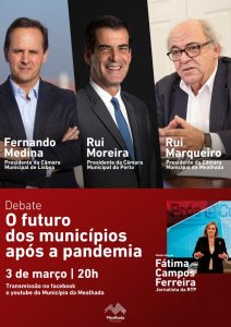 A Câmara Municipal da Mealhada vai promover, na próxima quarta-feira, dia 3 de março, às 20h, no Cineteatro Messias, um debate sobre “O futuro dos municípios após a pandemia”, com a presença dos presidentes das câmaras municipais de Lisboa, Fernando Medina, do Porto, Rui Moreira, e da Mealhada, Rui Marqueiro, e moderação da jornalista Fátima Campos Ferreira, da RTP.