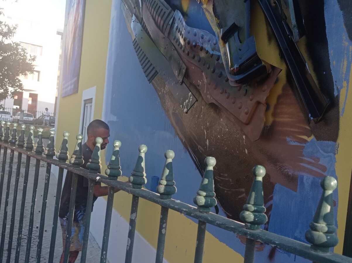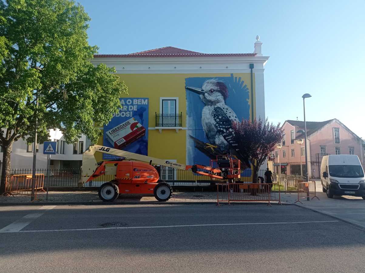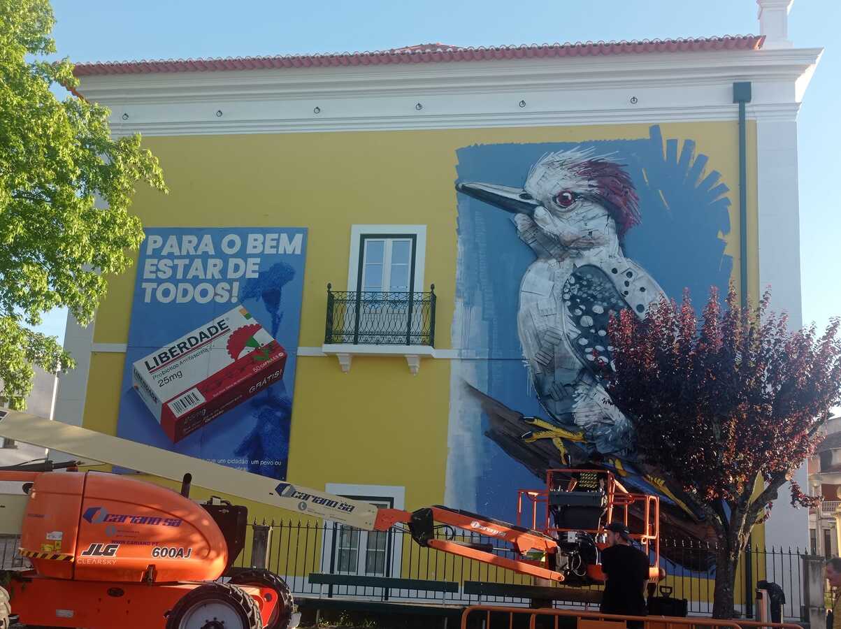 As imagens foram realizadas, na passada segunda-feira, e já na reta final, Artur Bordalo falou ao nosso jornal, explicando que a sua equipa foi convidada «a fazer uma peça sobre o 25 de Abril e a liberdade. Fizemos um animal, um pássaro, porque serão precisamente quem mais facilmente nos leva a pensar no que é a liberdade, se tivermos em conta o ar e em nada que os prenda».