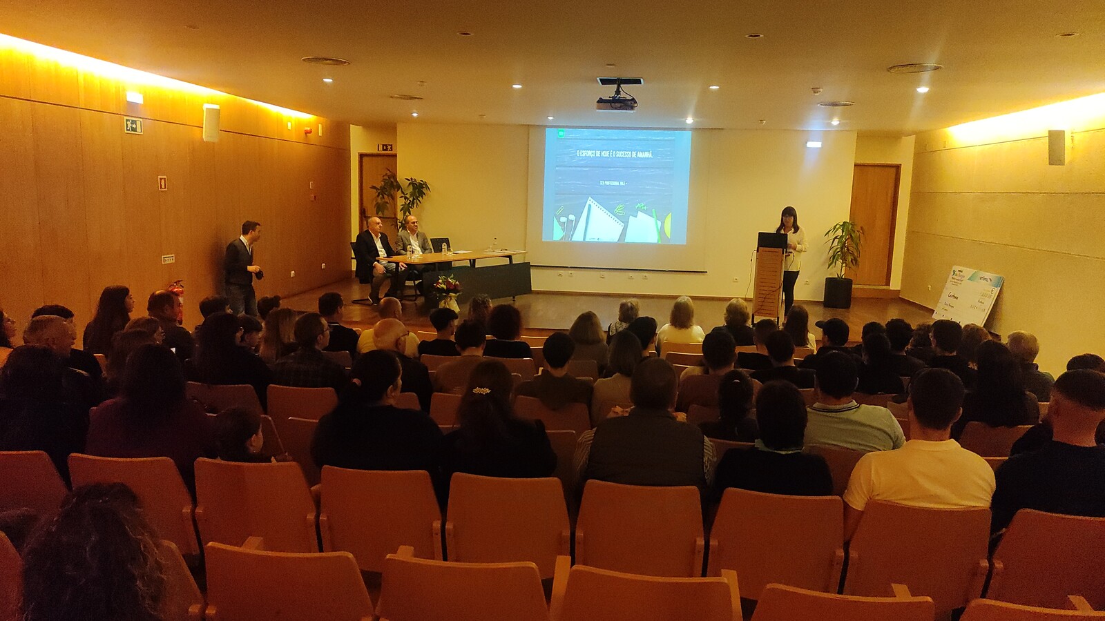 Houve ainda espaço para o testemunho de alguns alunos. «Estudar aqui foi um desafio e uma superação, muito pelo contacto que temos em contexto real de trabalho», destacou Cristina Pintea, que terminou o curso de Técnico/a de Ação Educativa no ano letivo transato. «Passei por uma grande experiência, a de Erasmus, e fiz três estágios, que me mostraram que o mundo do trabalho, é muito diferente do da escola», continuou, enfatizando que «a EPVL foi uma casa» e lhe «fez perceber que na vida não há impossíveis».