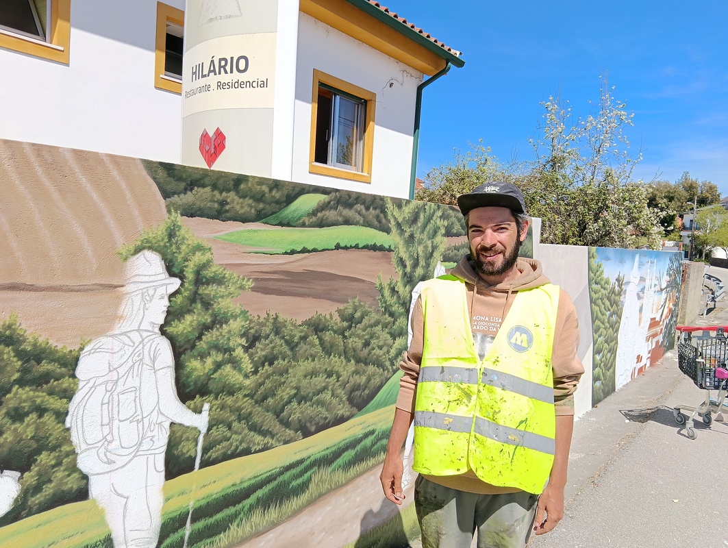 «No ano passado fiz um trabalho no Parque da Cidade da Mealhada e quando estava lá, os proprietários deste albergue convidaram-me para vir fazer esta parede sob o mote da peregrinação e dos peregrinos», começou por dizer o jovem, natural de Mortágua, mas que há uma década reside nas Caldas da Rainha.